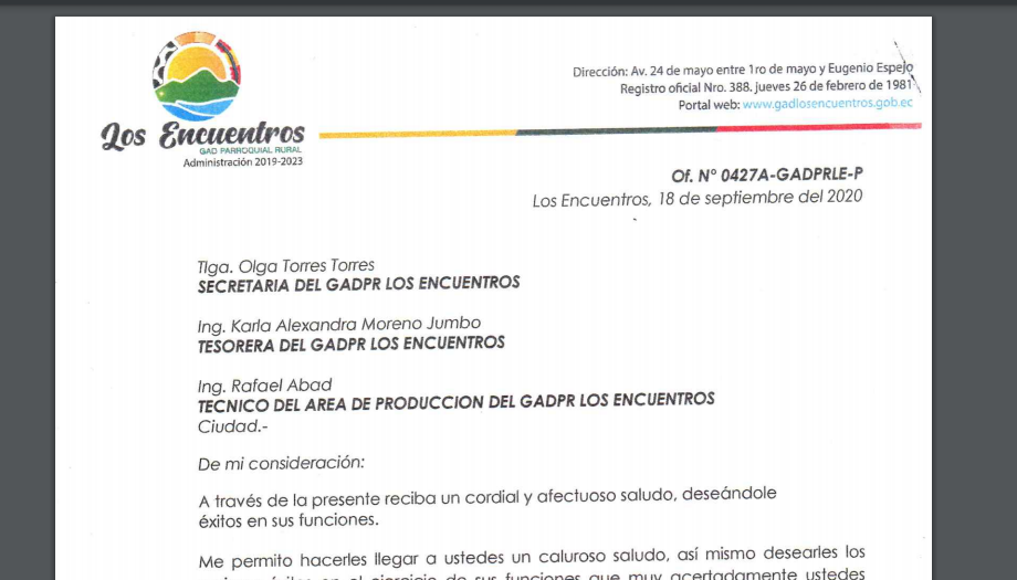 Convenio de cooperación entre el GADPR Los Encuentros y la Empresa Minera Lundin Gold Total del Proyecto: USD $28,048.52